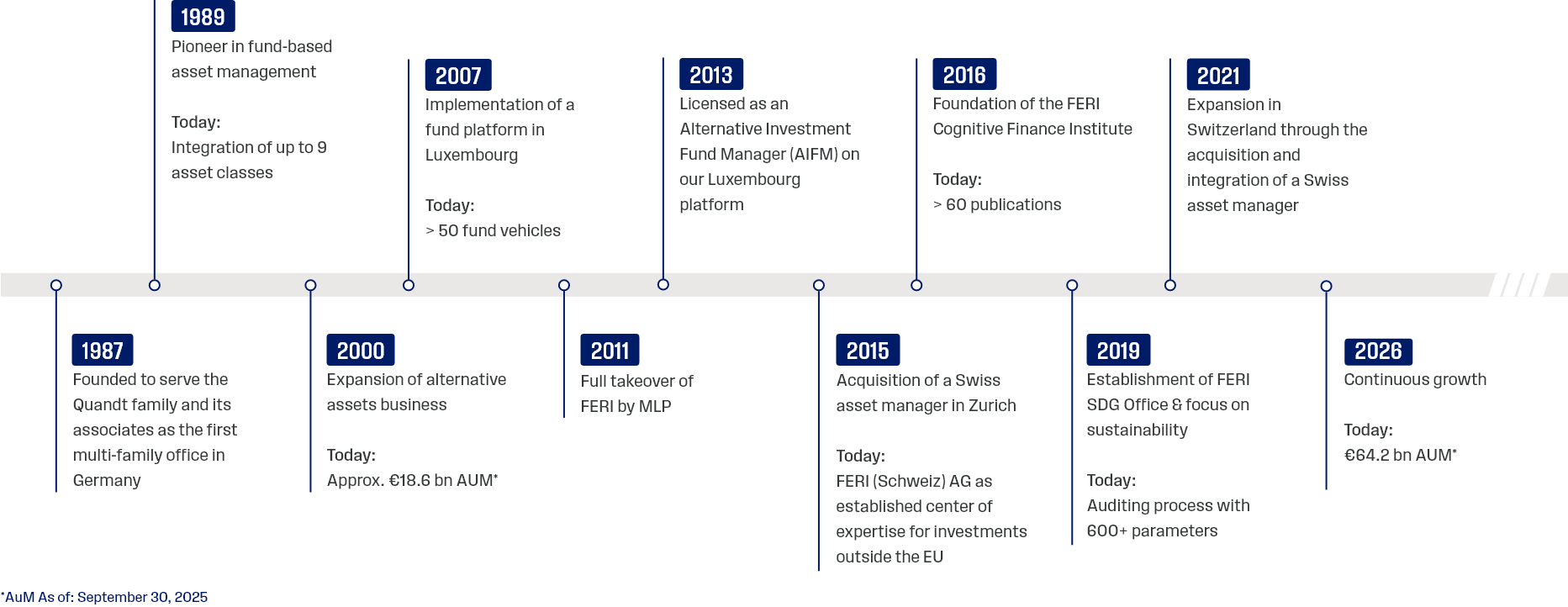 Our story began in the sky: the idea to create Germany’s first multi-family office was born during a hot air balloon flight. It culminated in the founding of FERI in Bad Homburg in 1987.