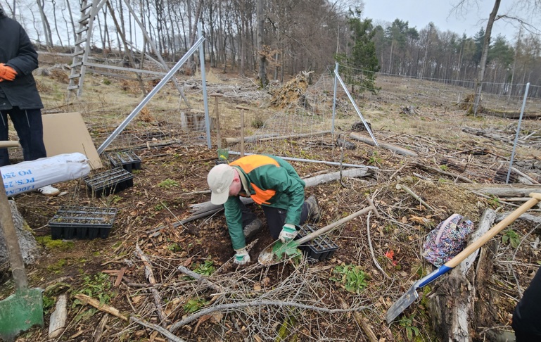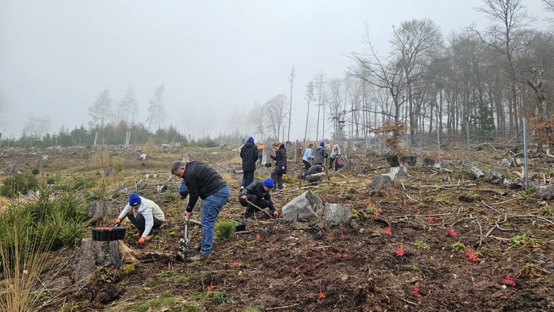 Zum Auftakt führten Förster und Revierleiter Johannes Kreß (Forst Bad Homburg) sowie Klimaförster Leonhard Molitor (Planted) in die Besonderheiten des Standorts ein. Sie erläuterten die Bedeutung klimaresilienter Baumarten und erklärten Schritt für Schritt die fachgerechte Pflanzung junger Setzlinge. Nach einer Einführung in Pflanztechnik und Bodenkunde begann die praktische Arbeit: In knapp zwei Stunden wurden 210 neue Traubeneichen in vier bis fünf Pflanzreihen gesetzt – mit jeweils einem Meter Abstand, um optimale Wachstumsbedingungen zu schaffen.