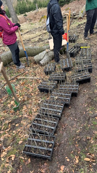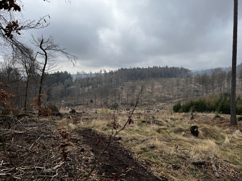 Ausgerüstet mit Spaten und Arbeitshandschuhen ging es für uns in Richtung Taunus. Vor Ort bot sich ein eindrucksvolles Bild: Waldflächen, die deutlich von den Folgen des Klimawandels geprägt sind – und zugleich die Möglichkeit, selbst aktiv zur Stabilisierung und Erholung des Waldes beizutragen.