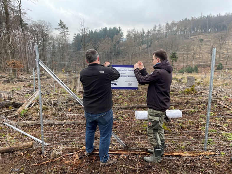 Um die jungen Setzlinge in der Wachstumsphase zu schützen, wurde die Pflanzfläche mit einem Forstgatter versehen, das Wildverbiss verhindert und ein ungestörtes Anwachsen ermöglicht.
