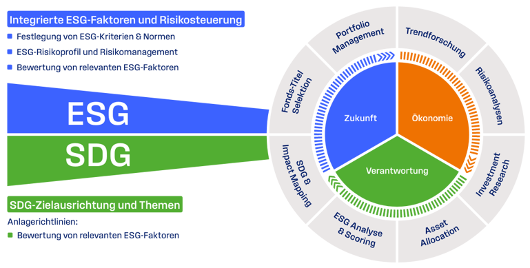 Unser Ansatz verbindet die Sustainable Development Goals (SDGs) der Vereinten Nationen mit den ESG-Kriterien (Environment, Social, Governance) und schafft so eine konstruktive und integrierte Nachhaltigkeitslogik. Wir integrieren Nachhaltigkeitsfaktoren in unsere Investmententscheidungen.